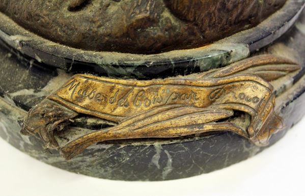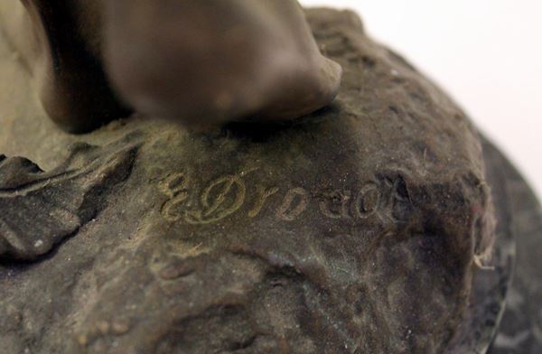 scultura in bronzo su base in marmo, alt. cm 73 mancanze