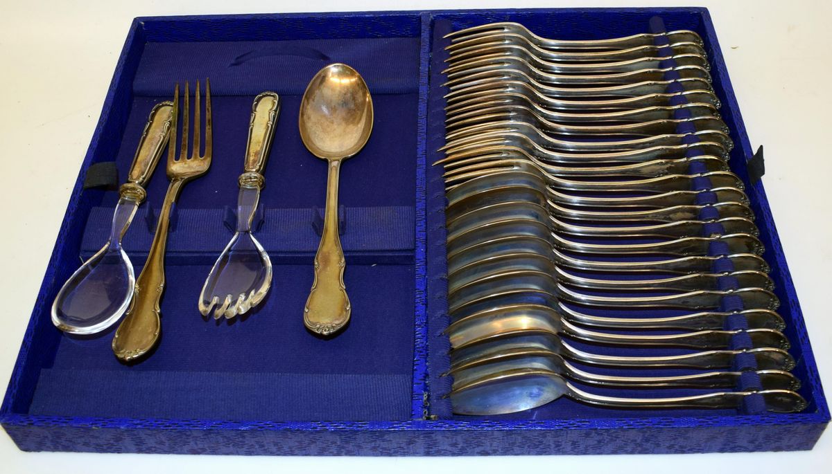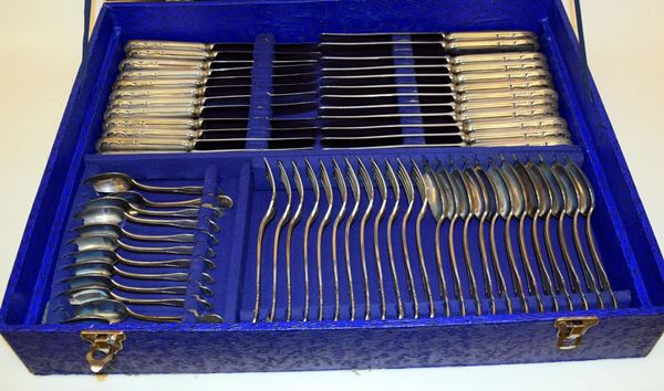 12 forchette, 12 cucchiai, 12 coltelli, 12 forchette dessert,