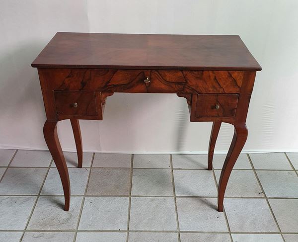 in radica piano da alzarsi con specchio, due cassetti, gambe mosse, cm