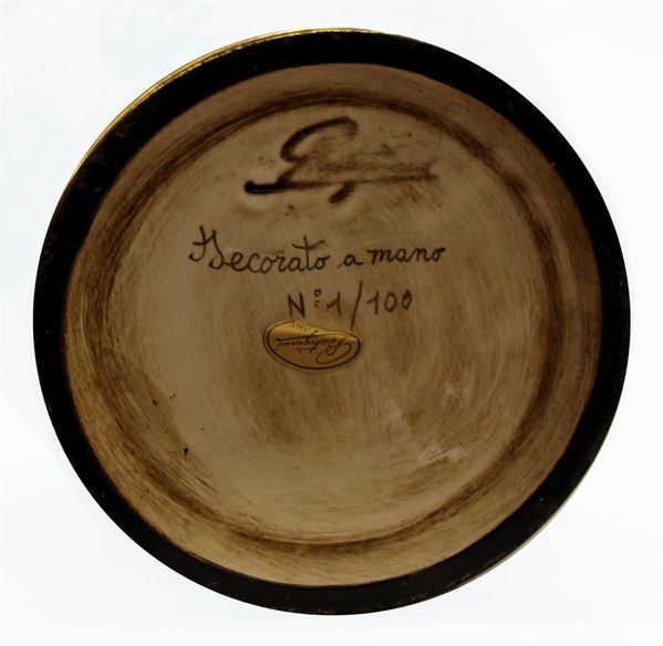 in ceramica in policromia e lumeggiata in oro, manifattura Ceramiche