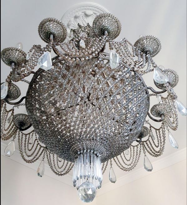 circolare con fili e gocce in cristallo a sedici luci, diam. cm 110