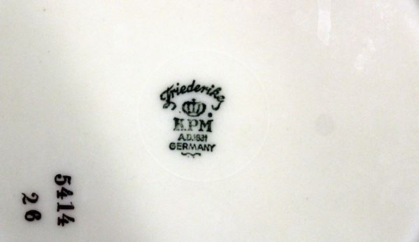 produzione KPM, in porcellana avorio decorata a motivi floreali, profilate
