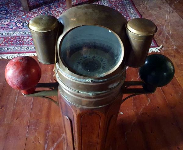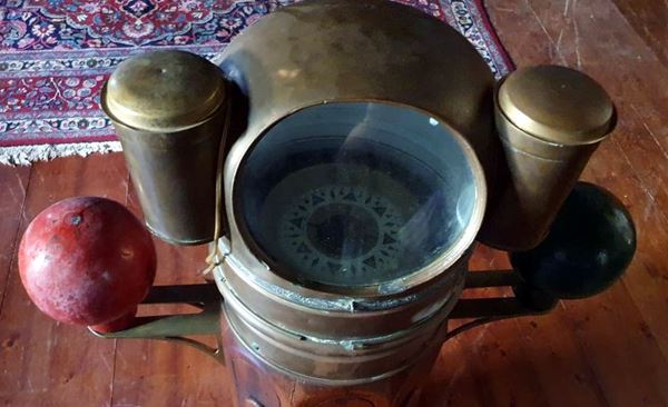 su colonna in legno, laterali due sfere di ferro laccate, cm 84x140,