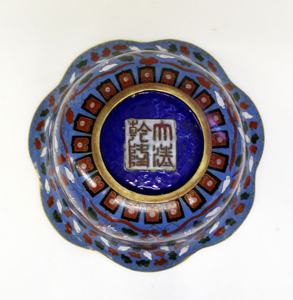in metallo cloisonnè decorato a cani di Pho e nuvole, marchio al fondo,