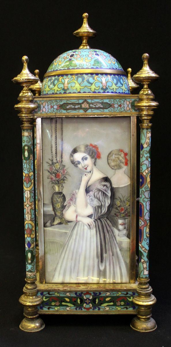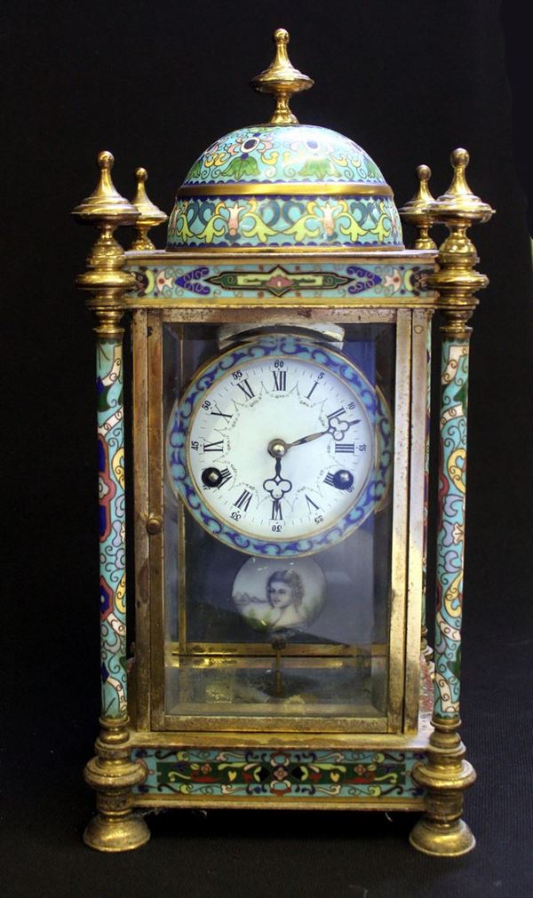 in metallo cloisonnè quadrante smaltato ad indici romani, fianchi decorati