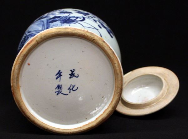 in porcellana bianco blu decorata a motivi floreali e faunistici, alt. cm