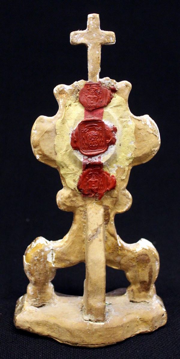 in legno laccato e dorato, alt. cm 19,5, difetti e mancanze