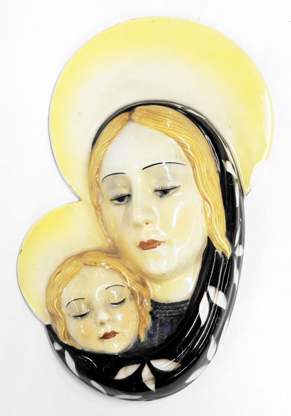 policromia raffigurante Madonna col Bambino; cm 25x15,5x5,5