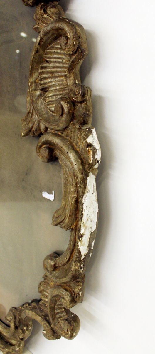 in legno intagliato e dorato, di forma ovale sagomata a motivo di volute