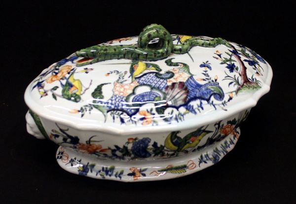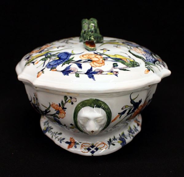 in ceramica dipinta in policromia a motivi floreali, presa realizzata a