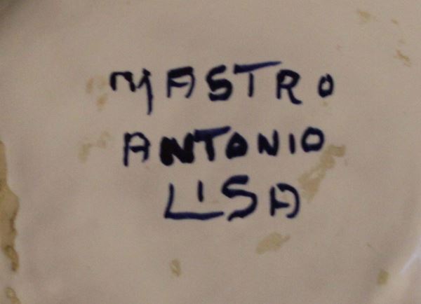 in maiolica decorata in policromia, firmato Mastro Antonio Lisa, alt. cm 35