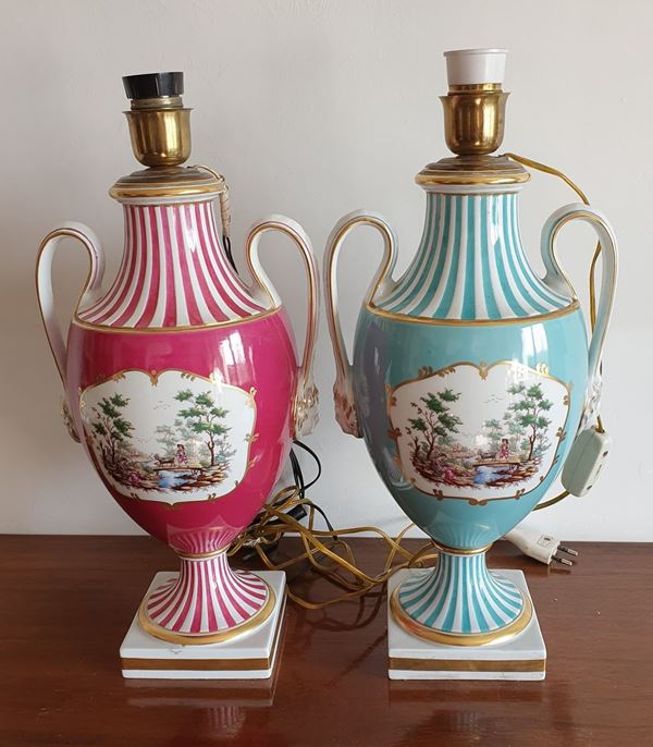 in ceramica, manifattura Richard Ginori, decoro a paesaggi, cm 19x42, difetti