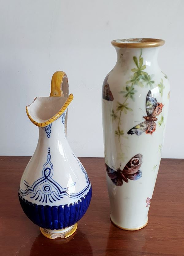 in maiolica smaltata, manifattura Ginori, alt. cm 24 e cm 20, rotture e difetti