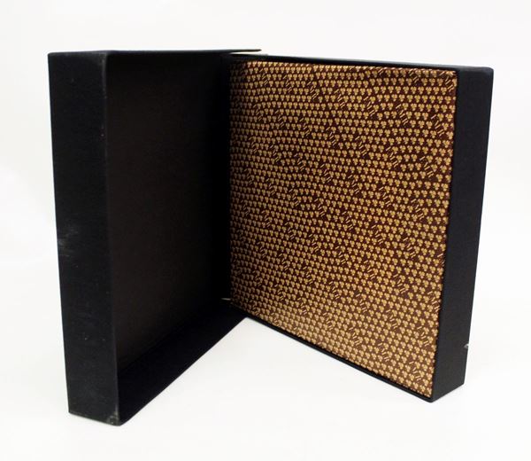Legatura in seta "Orient" nera con plancetta a colori e impressioni in oro