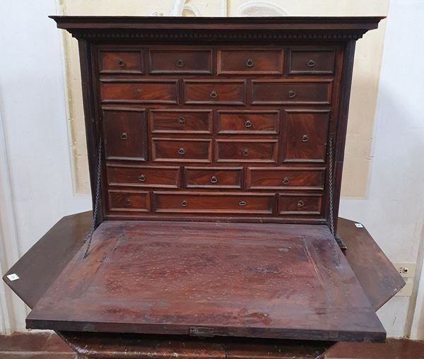 in noce, sportello a ribalta, internamente cassettini e sportello, cm 97x43x73