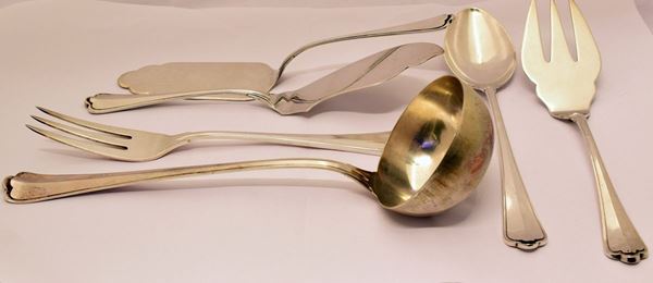 caffè , 6 piccole forchette, 1 romaiolo, 2 posate pesce, 2 posate da portata, paletta