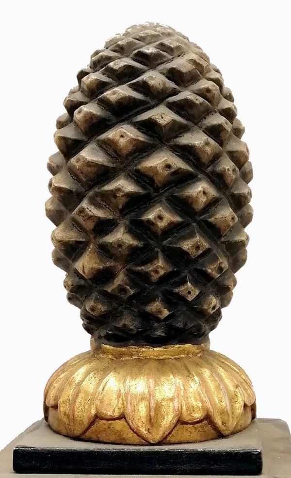 in noce, colonne ebanizzate con finali a pigne intagliate e dorate,