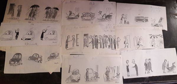 lotto di dieci illustrazioni eseguite per la rivista Annabella comprensive del timbro editoriale