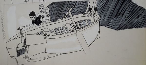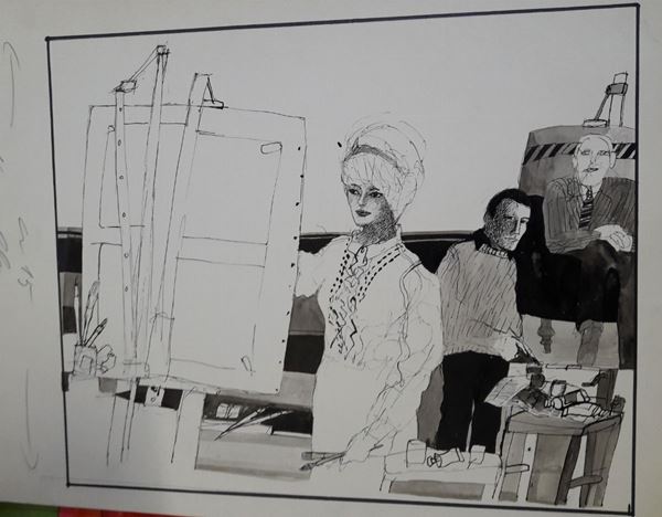 lotto di otto illustrazioni eseguite da per la rivista "Bella" comprensive di timbro editoriale datate 1966