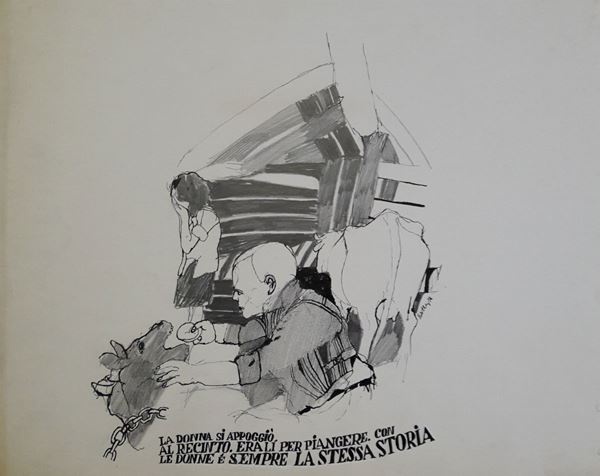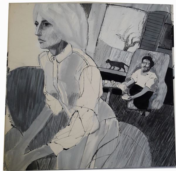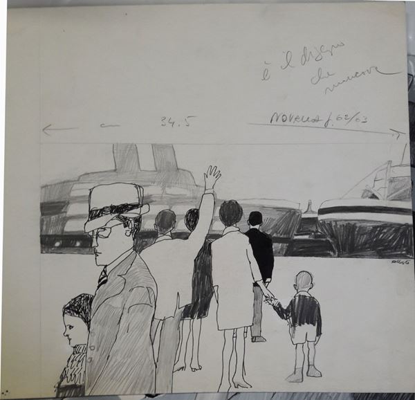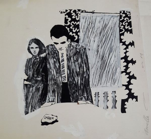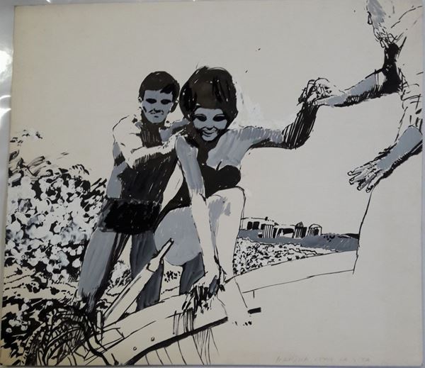 lotto di otto illustrazioni eseguite per la rivista "Bella" comprensive di timbro editoriale datate 1966