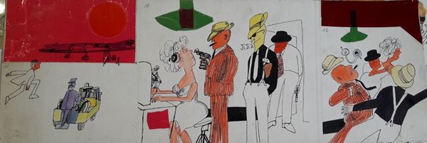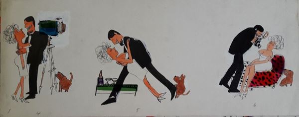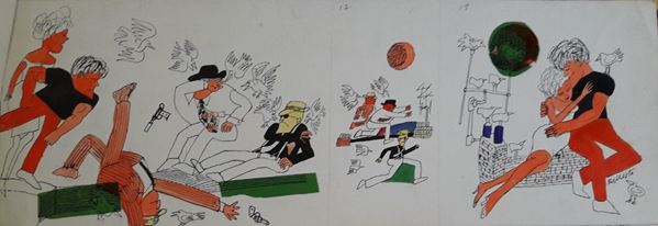 lotto di otto illustrazioni eseguite per la rivista "Novella"