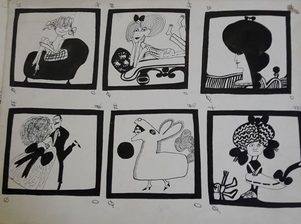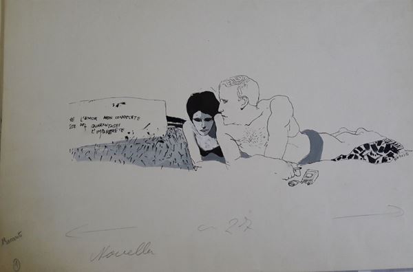 lotto di nove illustrazioni eseguite per la rivista "Novella"