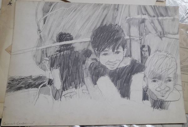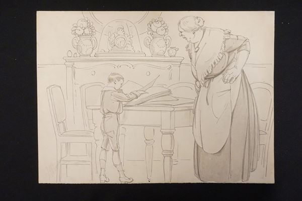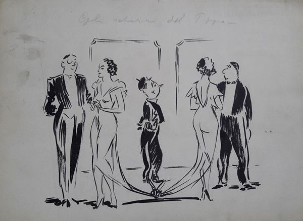 matita, china e inchiostro su carta, cm 51x37 max. difetti e mancanze