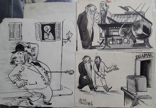 lotto di sette illustrazioni raffiguranti 3 scene satiriche non complete per "Il giornalino della domenica" periodico per l'infanzia pubblicato, con alcune interruzioni editoriali, dal 1906 al 1927
