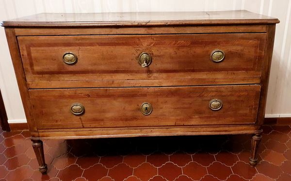 in noce filettato , due cassetti, gambe scanalate , cm 130X58X84