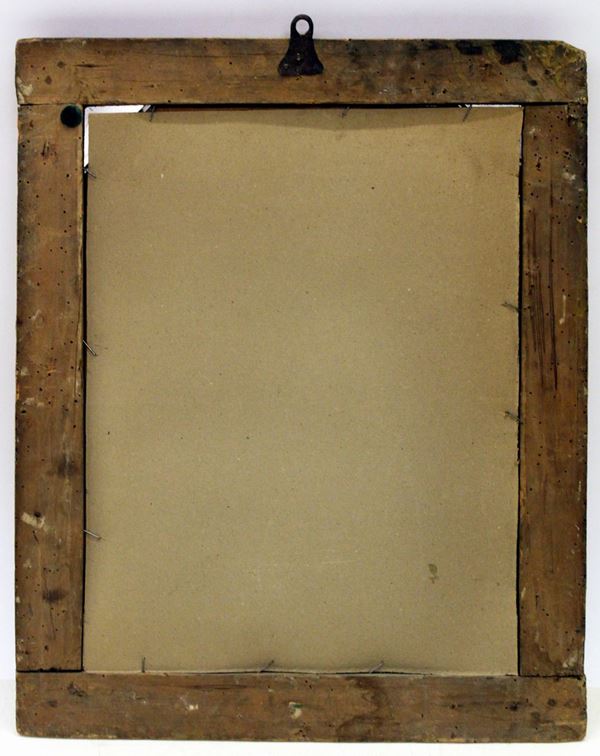 in legno intagliato e dorato a mecca, ingombro cm 48x60, luce cm 37x49, difetti