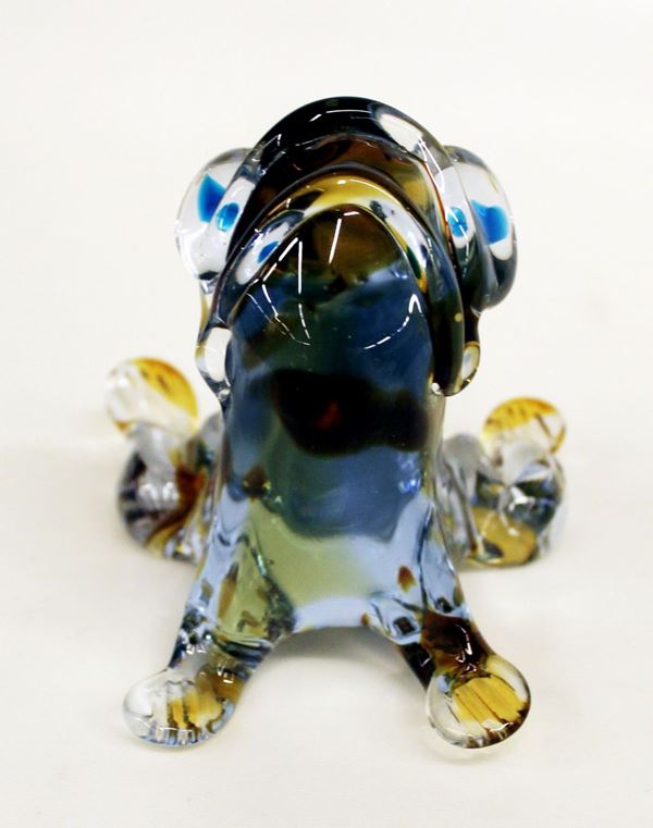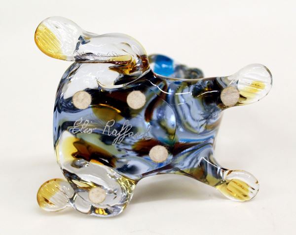scultura in vetro trasparente, incolore e policromo, nei toni del blu e dell'ambra, firma incisa alla base, alt. cm 12