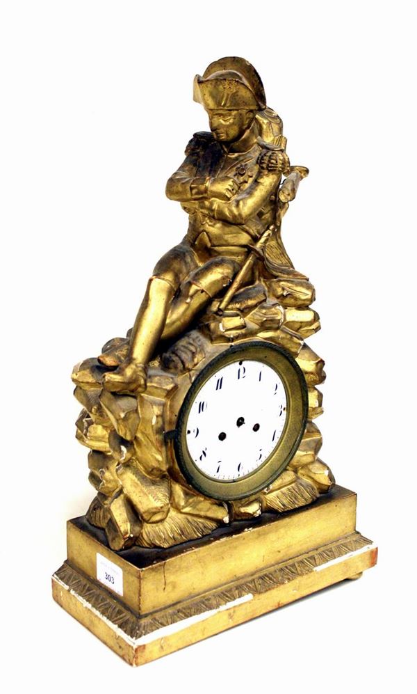 in legno dorato e intagliato, mostra circolare con sovrastante scultura raffigurante Napoleone, cm 27x12,5x45