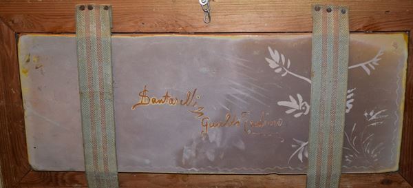 a lustro con decorazione a scena mitologica , cm 41,5X15,5
