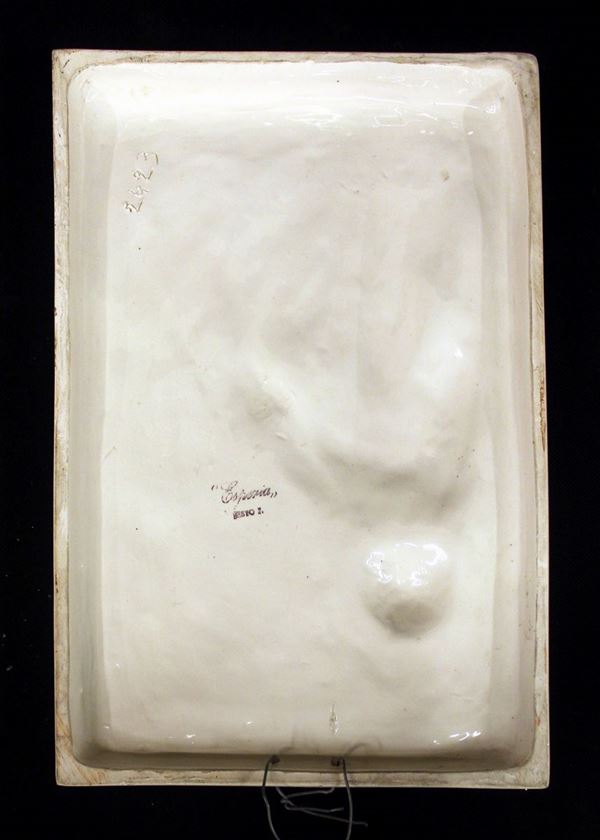 in ceramica decorata in policromia raffigurante Sant Uberto 32,5x24
