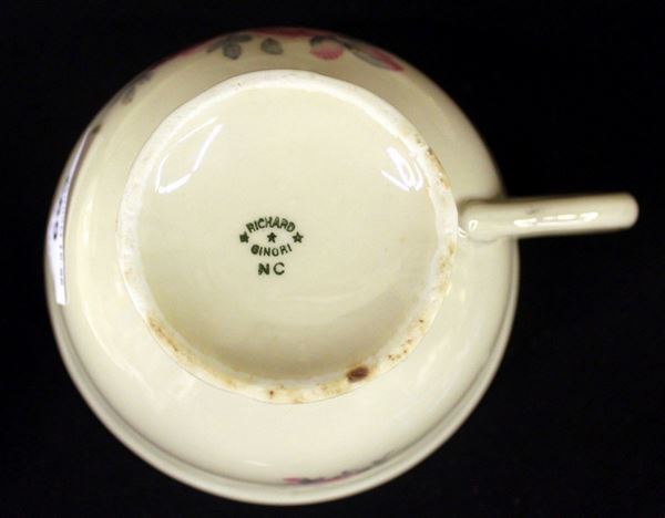 manifattura Ginori, in porcellana avorio decorata a rose, orli lumeggiati in oro, composto da 12 tazze e relativi piattini, teiera, lattiera e zuccheriera