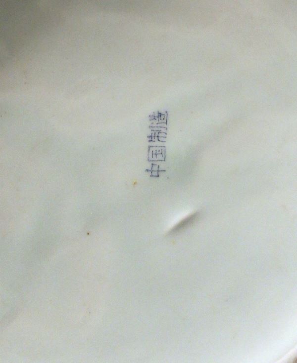 in ceramica dipinta in policromia a motivi figurati e lumeggiata in oro a rilievo, alt. massima cm 46