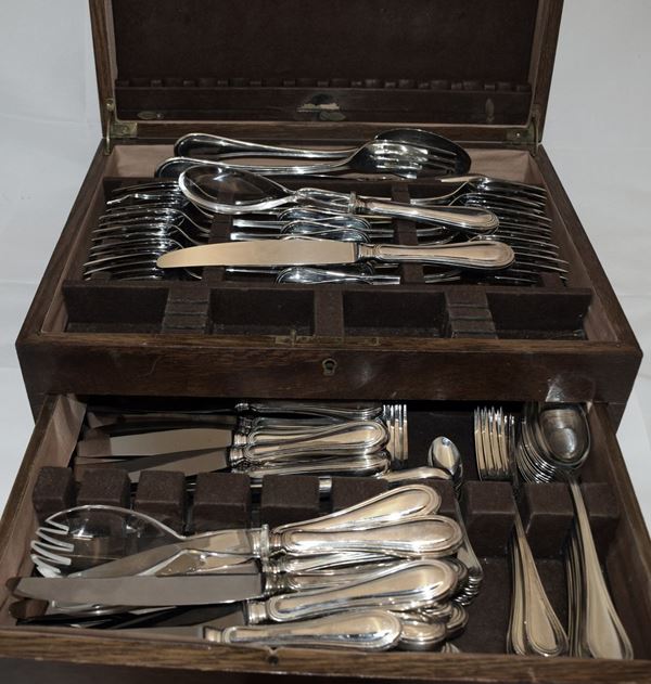 in metallo argentato e manici in resina entro astuccio