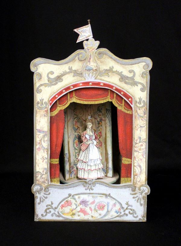 in legno laccato e rivestito in carta, realizzato a teatro dell’arte, alt. cm 36