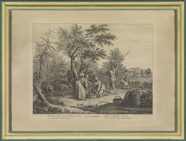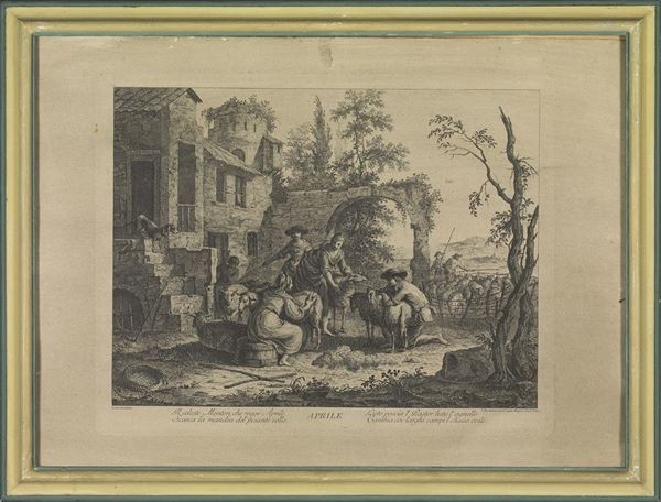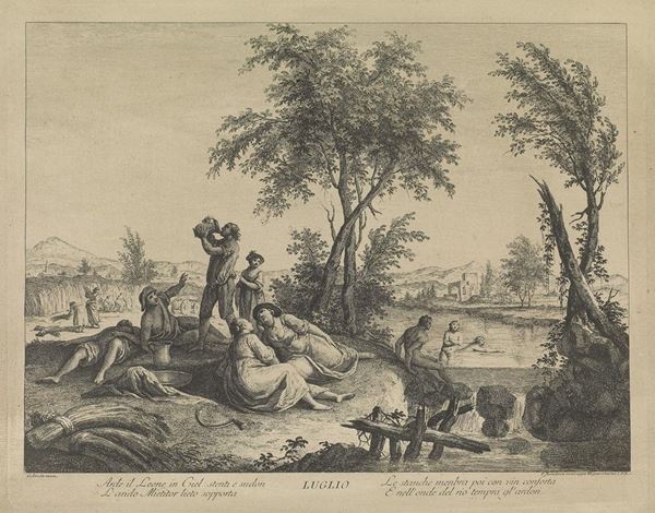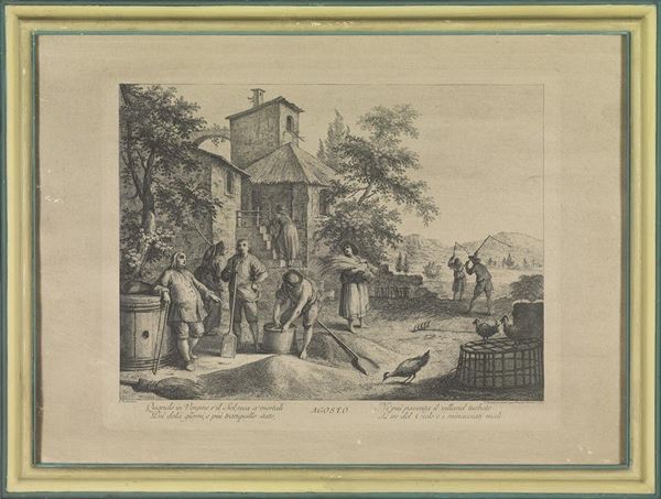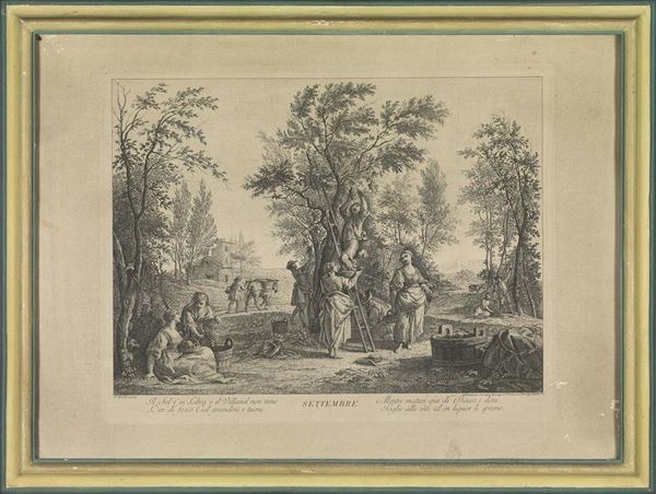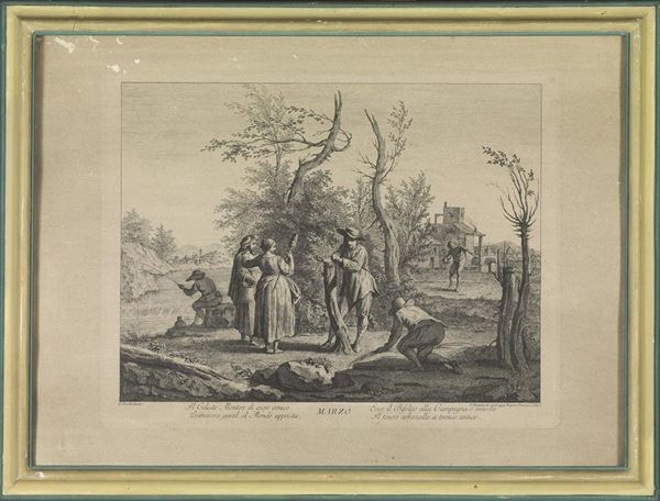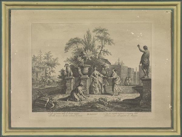 in basso al centro il nome del mese,a sinistra "G. Zocchi incid." e a destra "F. Bartolozzi