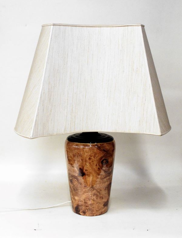 in ceramica decorata a motivo di radica, completa di paralume, alt. cm 70