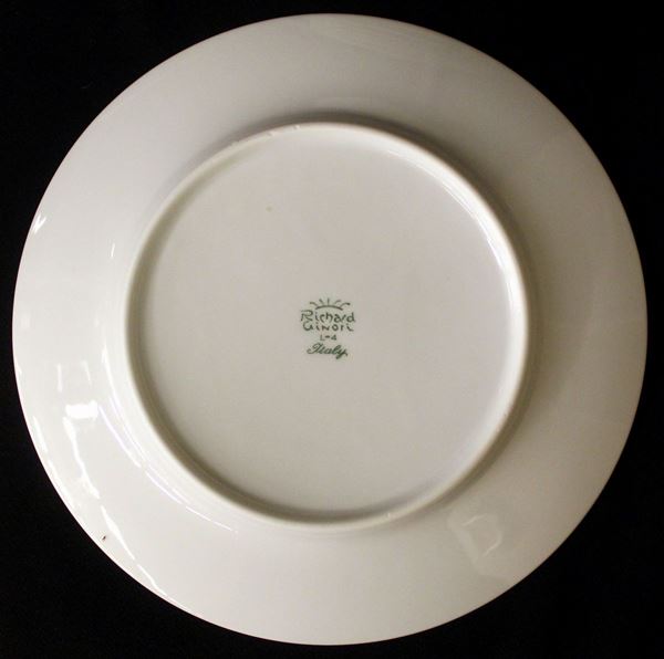 manifattura Richard Ginori, in porcellana bianca decorato a motivi fioriti policromi, composto da 12 piattini e 2 vassoi circolari