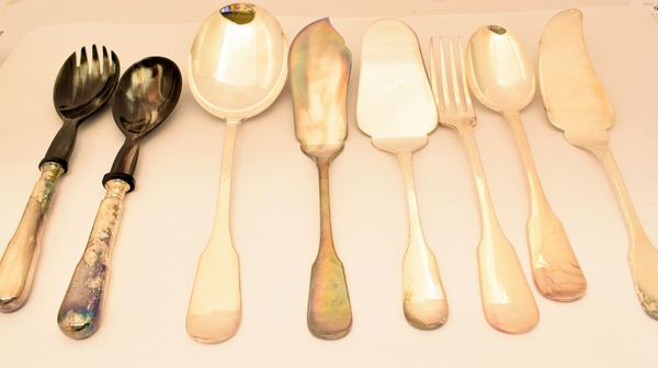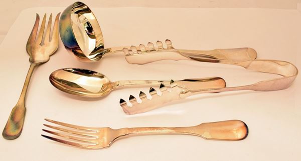 12 forchettine, 1 romaiolo, 3 palette,1 forchettone pesce, 5 posate da portata ,