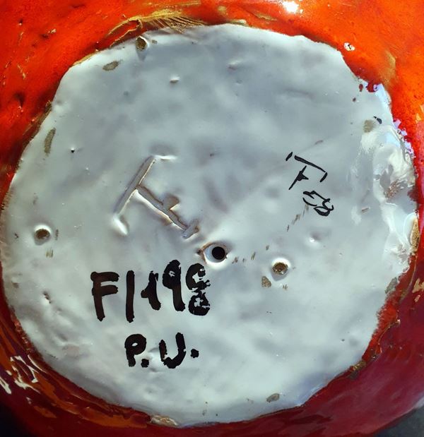 in maiolica smaltata, raffigurante cardinale, reca sigla F, cm 25x30