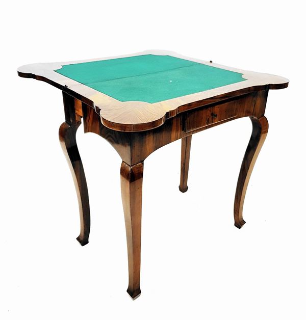 in noce, piano a ribalta, un cassetto, cm 88x44x83