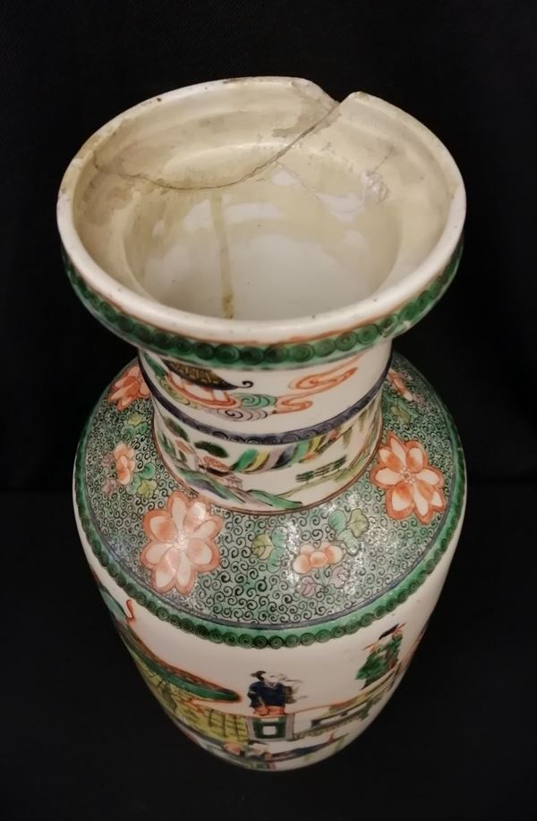 in porcellana decorata a scene di genere, alt. cm 46, difetti e restauri
