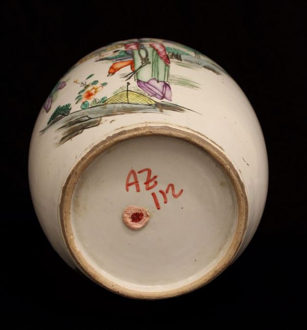 in porcellana dipinta a motivi figurati ed ideogrammi, difetti, alt. cm 30