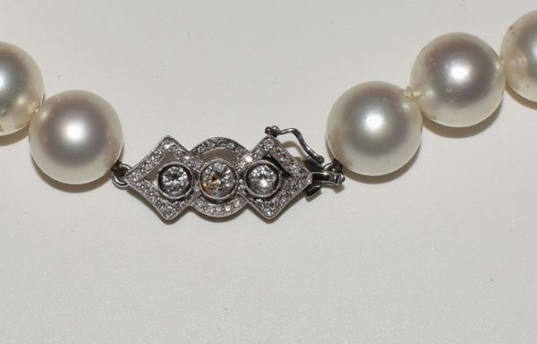 COLLANA GIROCOLLO DI PERLE , ORO BIANCO 18KT E DIAMANTI
