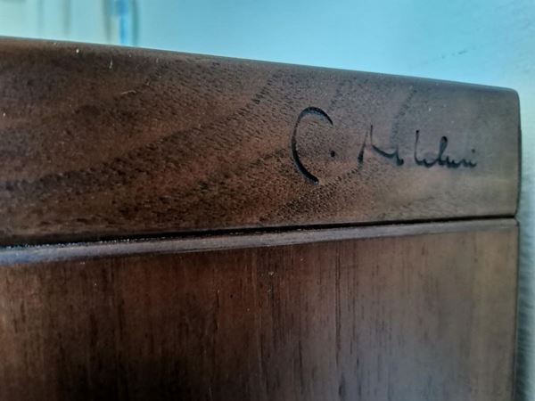struttura in legno di noce massello. Firma dell'autore impressa a fuoco serie Torbecchia, per Poltronova anni 60 cm 85X200X54 difetti