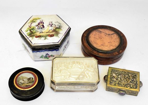 CINQUE SCATOLINE E TABACCHIERE SEC. XIX/XX