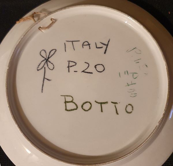 in ceramica con decori a carrozze e figure, cm 20, difetti